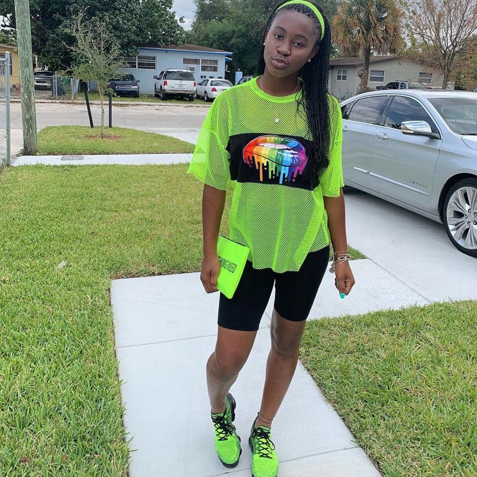 Channel serious fashionista vibes with these trend-setting looks. It consists of all-black everything and a pair of chunky, colorful sneakers. Think of it as a more low-key version of a “raver girl” look with pops of neon. Fishnet over-shirts look fabulous in either neon colors or all black and automatically pull a look together.